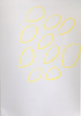 o.T. (Sepia / Zitronengelb) / 2020 / Aquarell und Ölpastell auf Papier / je 21 x 14,5 cm / 6 Versionen